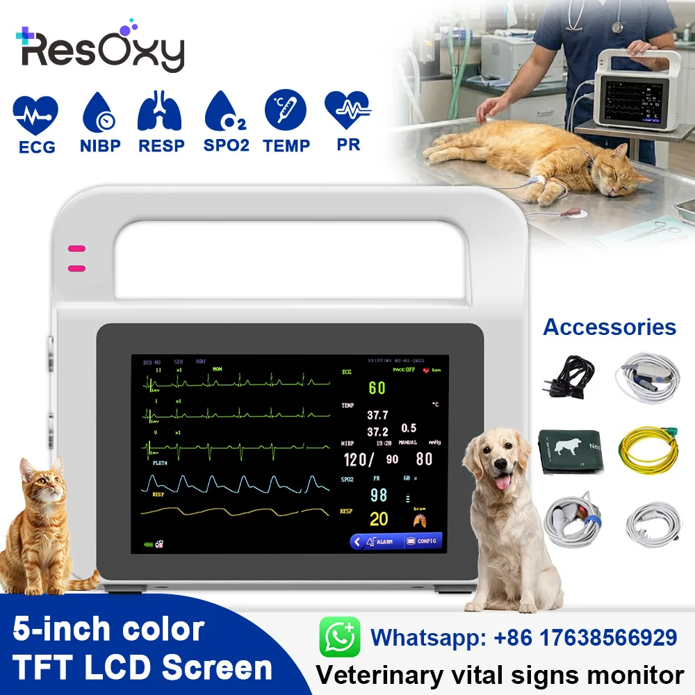 Resoxy veterinární podstatný známky monitor 5barvy palec barva obrazovka zvířátko monitor ekg NIBP PR RESP TEMP spo2 veterinární monitor