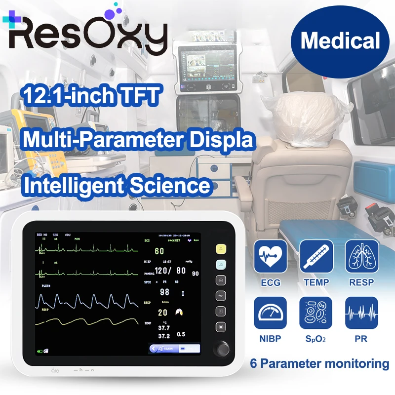 Resoxy 12.1in lékařská podstatný známky monitor přenosné pacient multi-parameter člověk monitor pro ECG/NIBP/TEMP/RESP/SPO2/PR testování