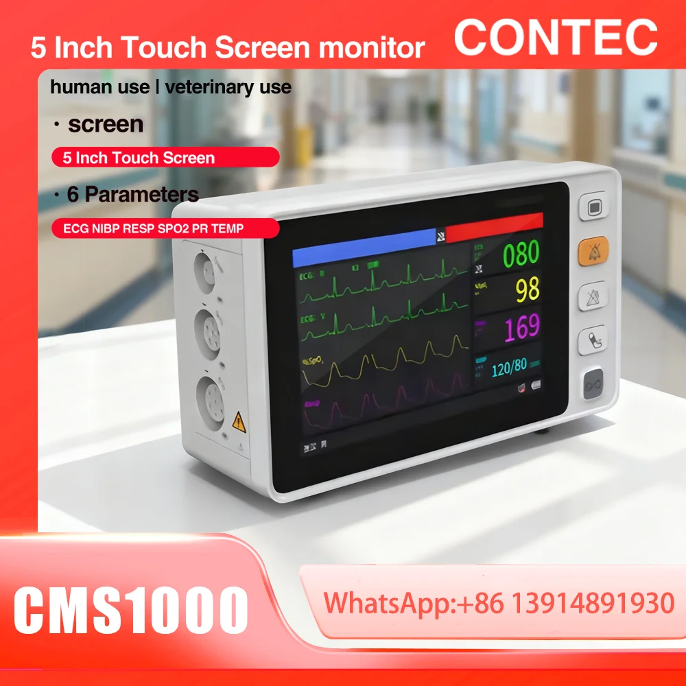 CONTEC CMS1000 přenosné pacient monitor - 5" dotek obrazovka 6-parameter ECG/NIBP/RESP/SPO2/PR/TEMP pro člověk & veterinární