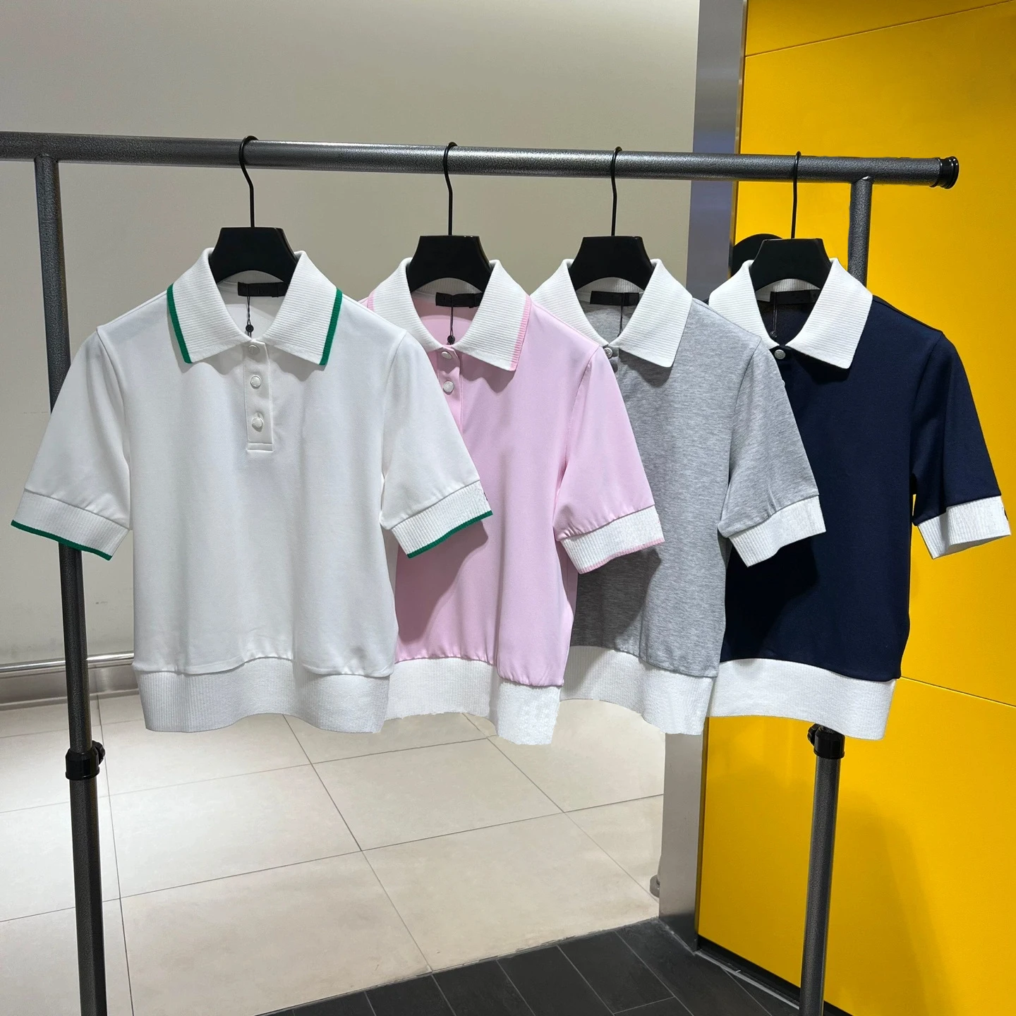 Dámská golf košile polovina rukáv léto móda jednoduchý mač prodyšné krátký rukáv zeštíhlující límec barva blok sportovní oblečení