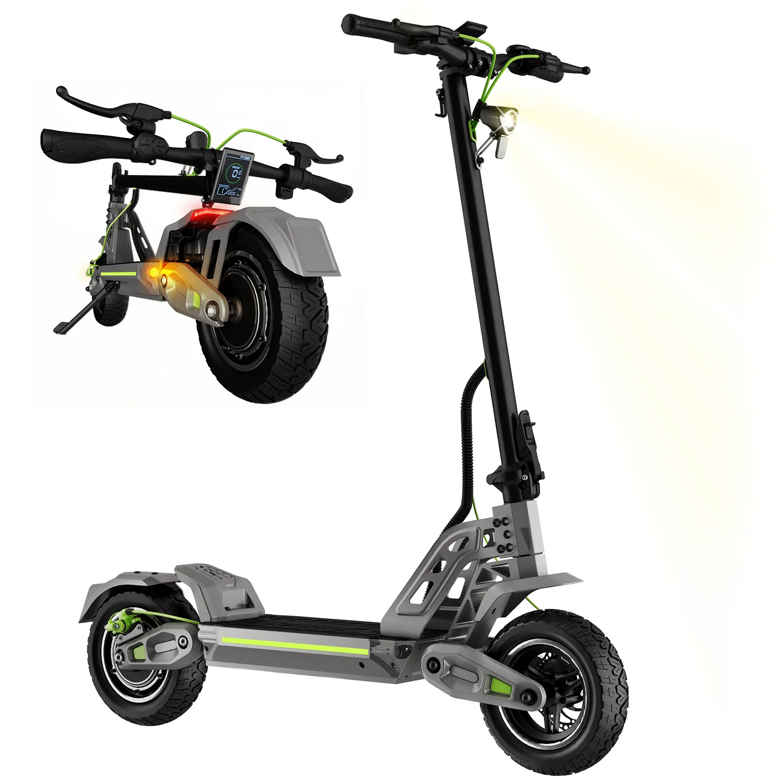 Ie-es1 e-scooter 2400W dvojí motorový 48V20.8AH llithium baterie elektrický koloběžka aldult 10palcový off-road pneu skládací escooters