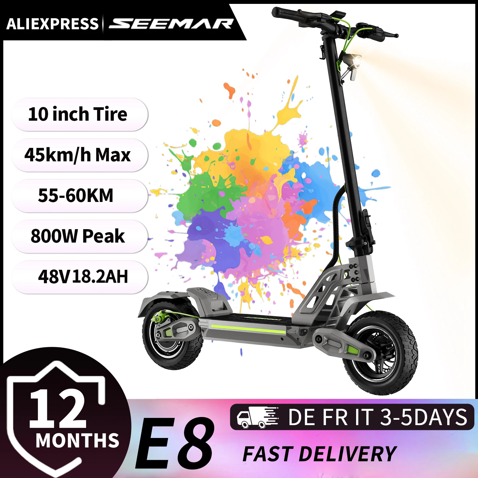 Dospělý E8 , 48V 18.2AH elektrický scootere, 55-65km dosah, culmination W, dvojitý suspenze systém, off-road