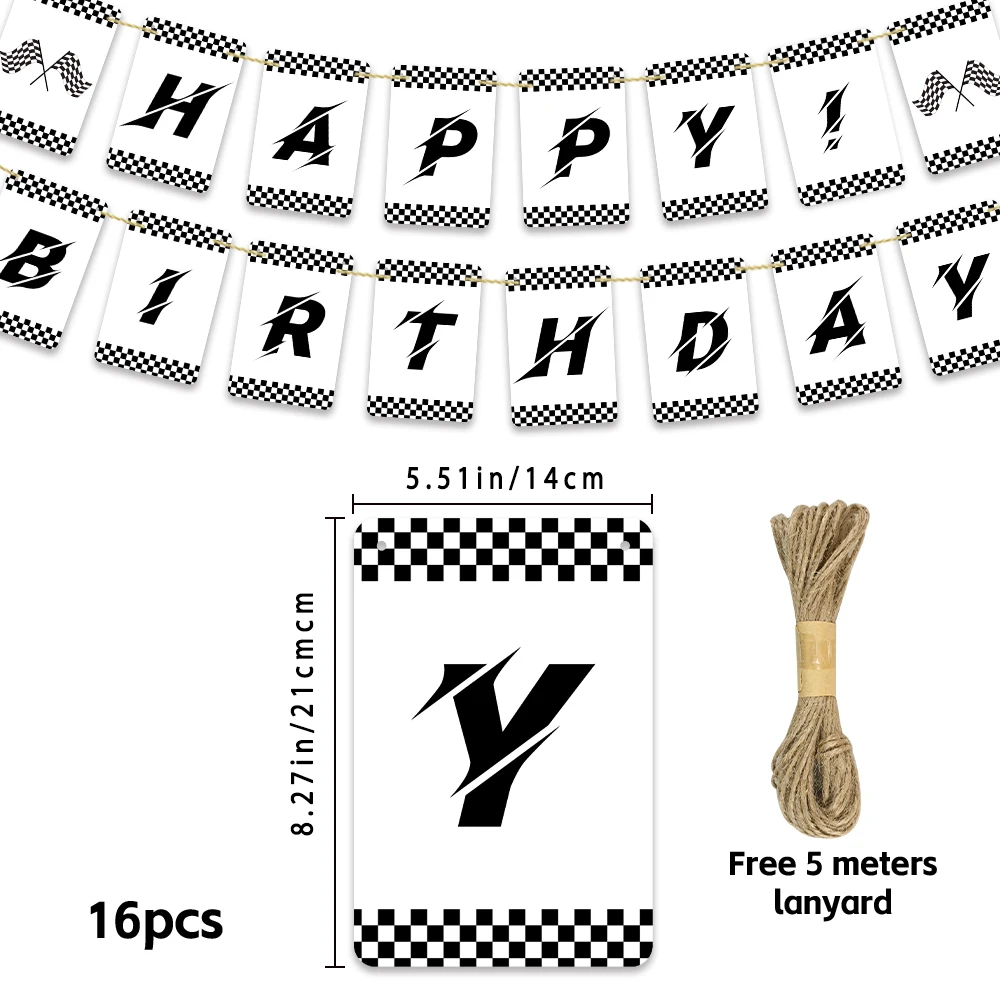 16 ks checkered závodní bázeň narozeniny prapor sada, požitek večírek dekorace, pokoj dekorace, svátek oslavy, zahrnuje provázek
