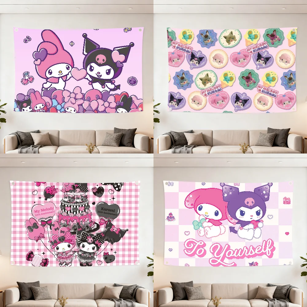 Kreslený roztomilá SRO k-kuromi má m-melody standarta nejlepší cena dekorace outdoorové piknik večírek umění závěsný domácí kemping večírek prapor rozlet