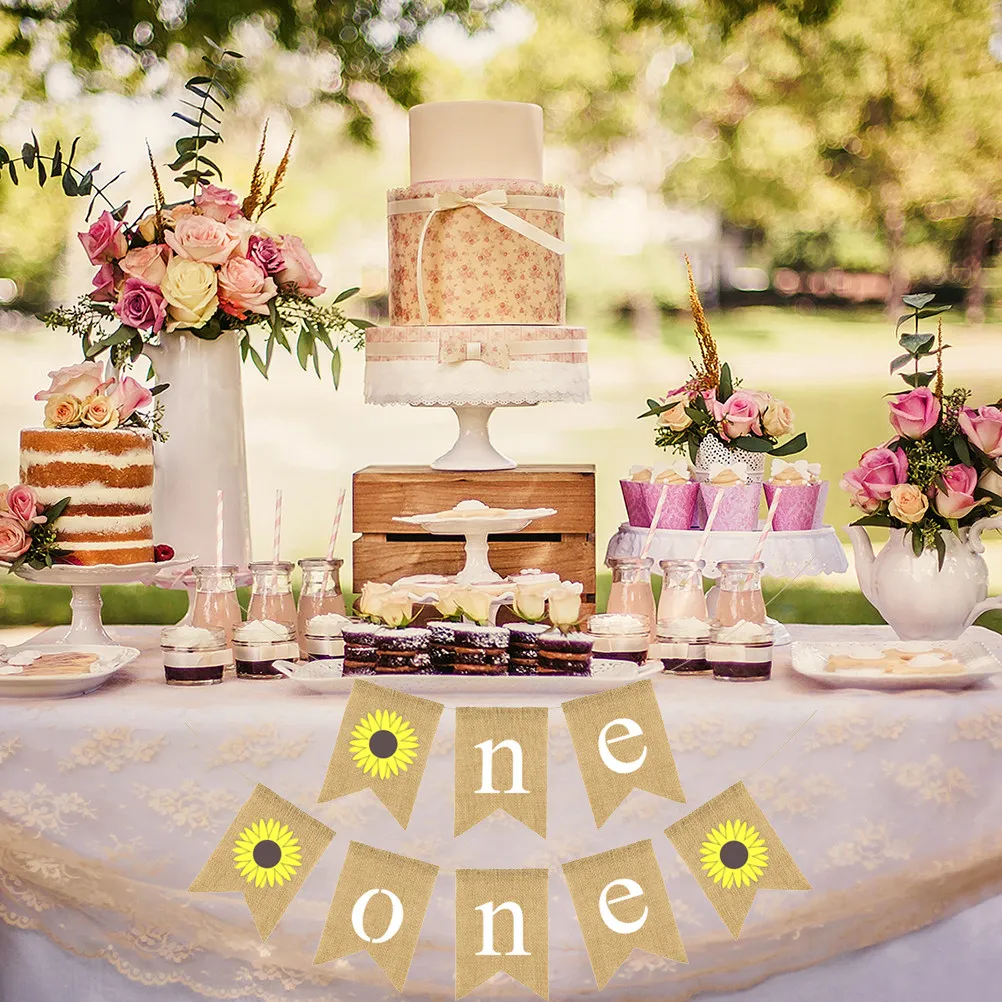 2set slunečnice prádlo prapor děťátko první narozeniny vlaštovčí ocas strnad standarta děti večírek dekorace závěsný girlanda zásoby