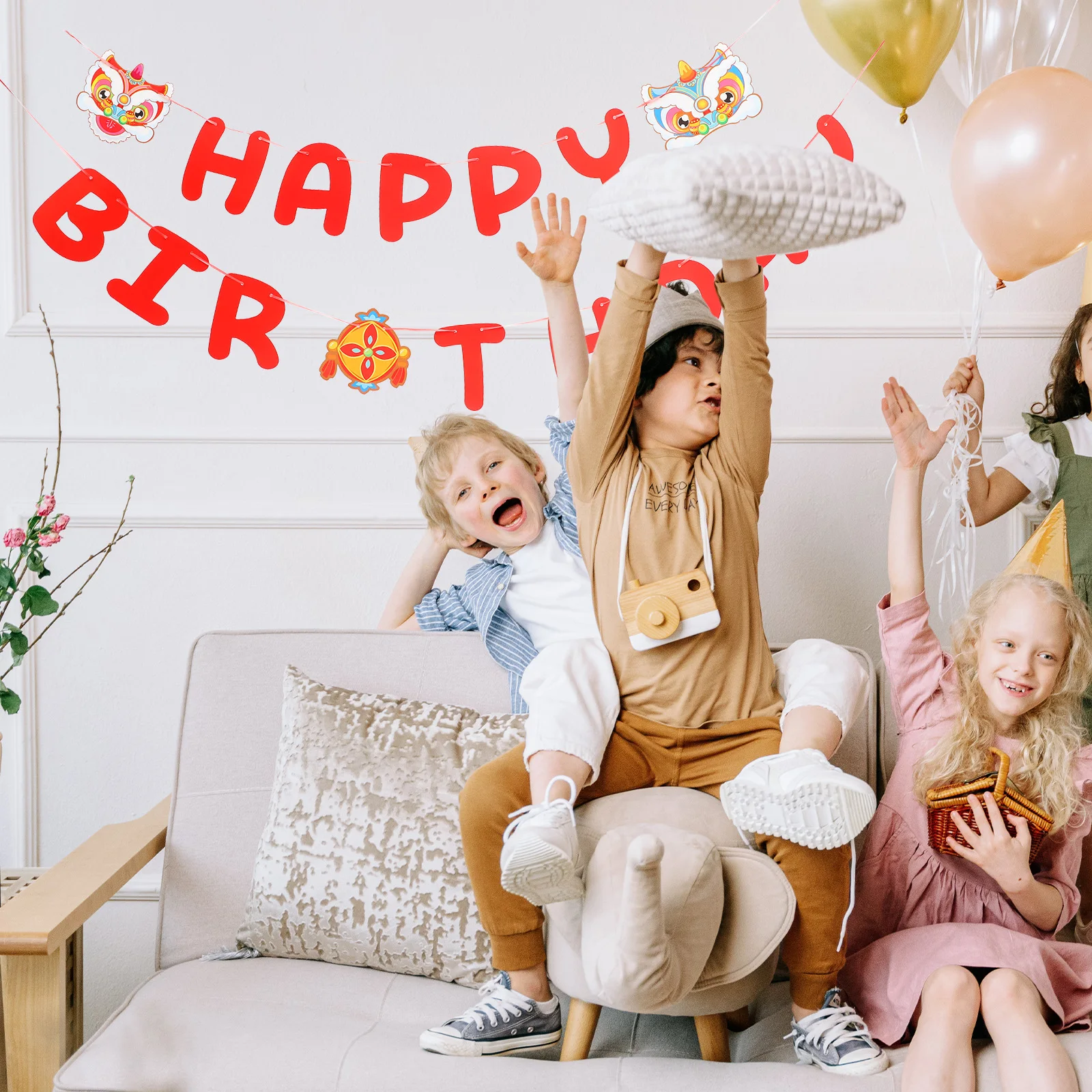 1set št'astný narozeniny dopis prapor Čínské bázeň večírek strnad s tančí lev tisk děťátko sprcha dekorace znovu použitelný narozeniny