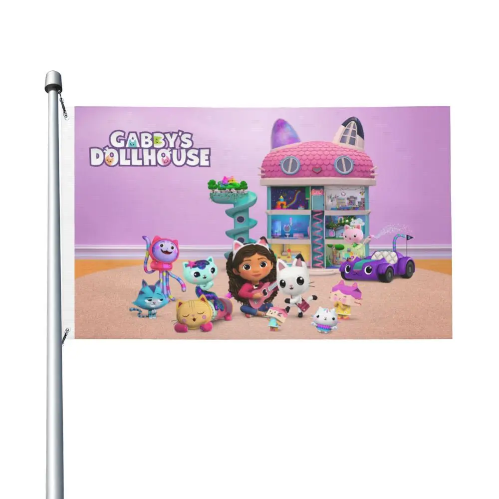 Nový gabbys domeček pro panenky dvojitý sided prapor vánek standarta sad standarta dekorační standarta večírek prapor 3x5ft (90x150cm)