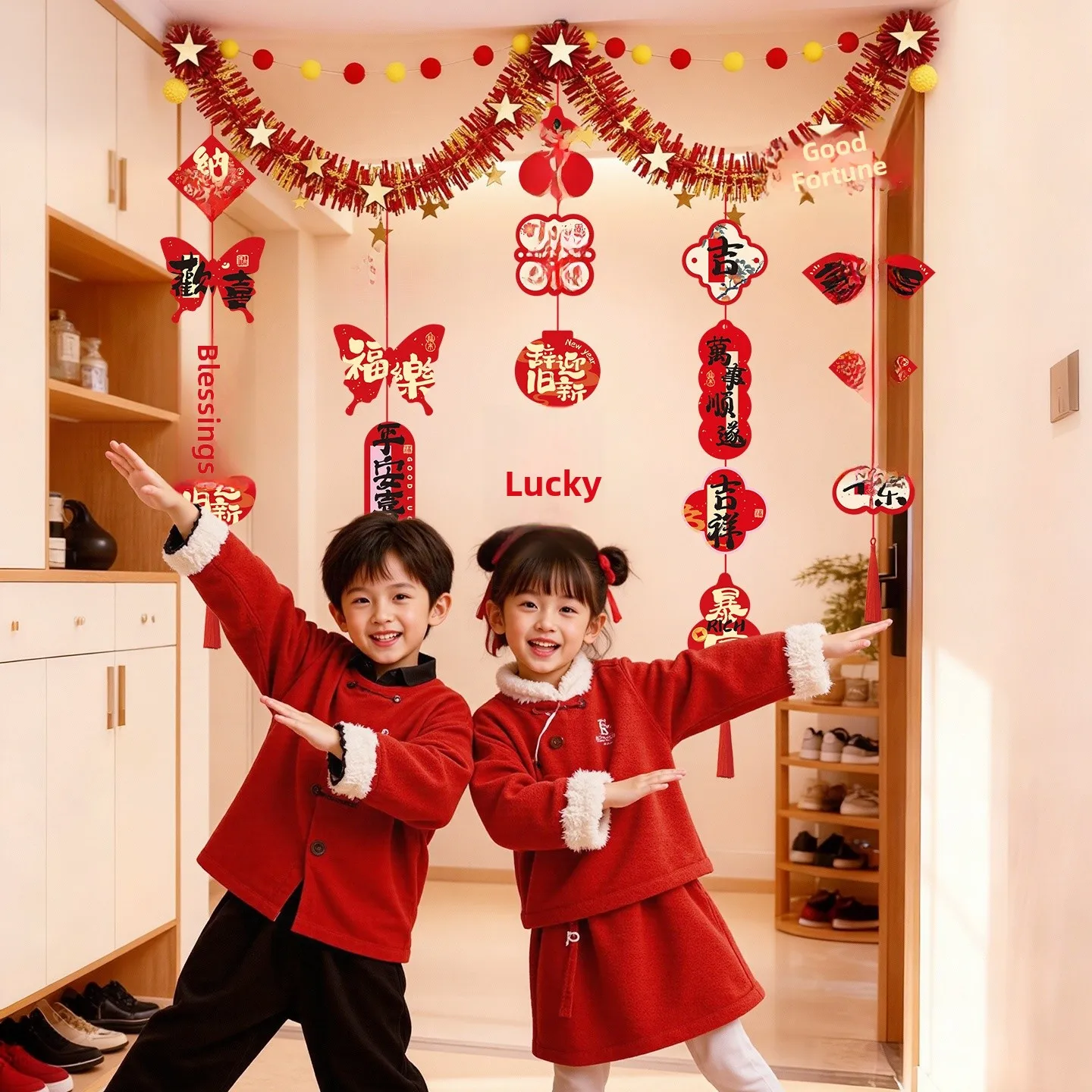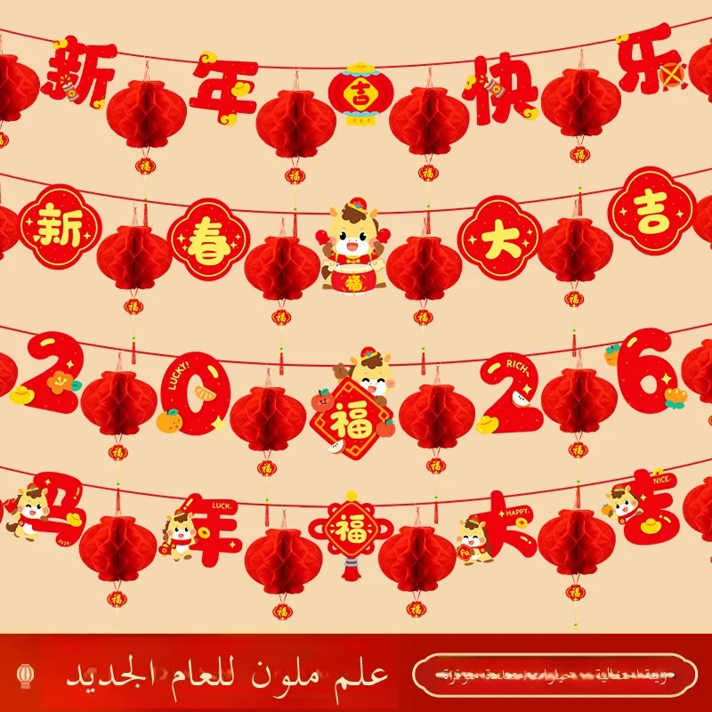 Nový rok dekorační dřít standarta muž učebna dekorace 2026 rok slavnostní aosphere scéna uspořádání závěsný okrasa