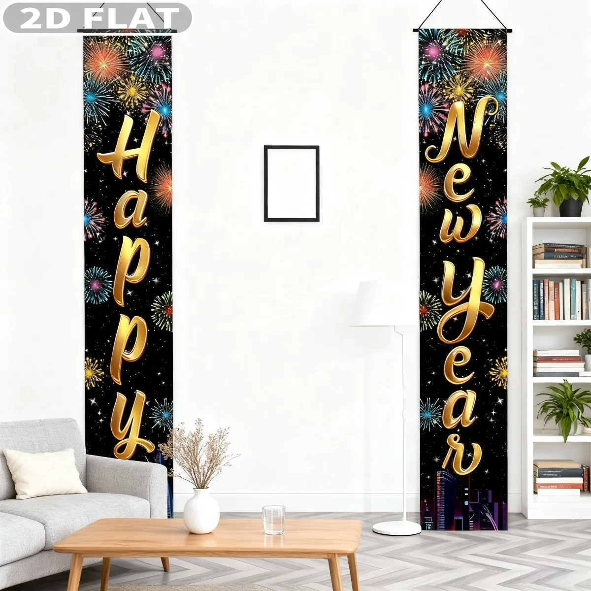 1pár št'astný nový rok dveře prapor, 72x12inch prapor 2026 pro dekorace | polyesterová št'astný nový rok 2026 prapor pro nový let eve dekorace