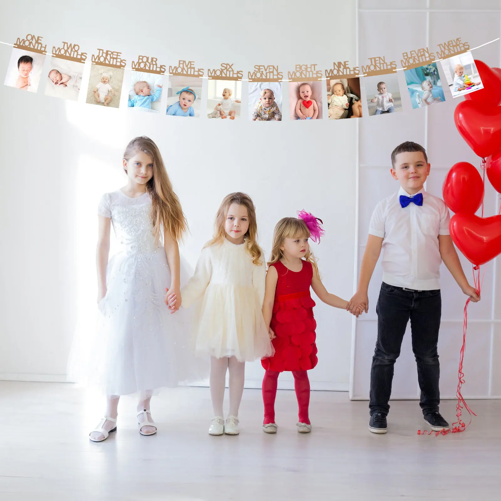 1set děťátko fotka formulovat strnad kraftového papír klip 12 měsíce první rok narozeniny večírek girlanda prapor dekorace děťátko fotka strnad