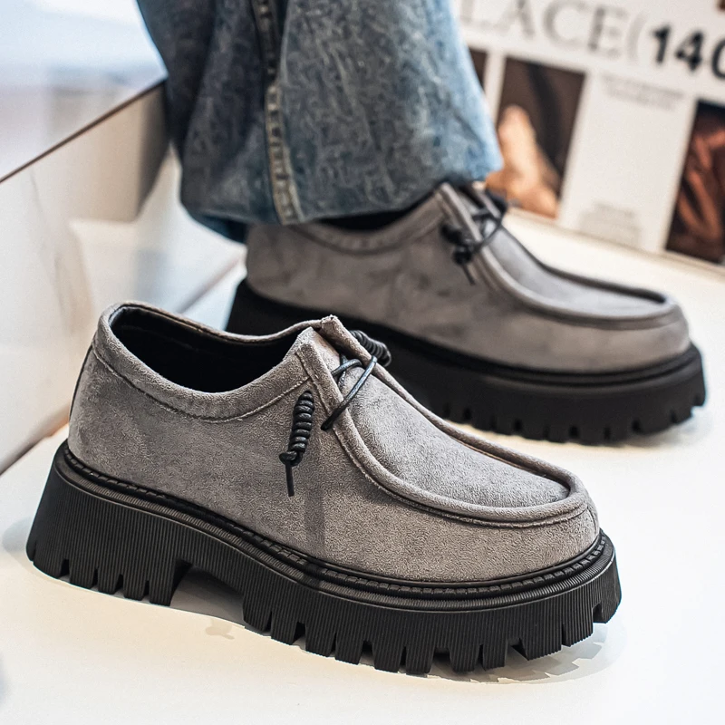 Pánské obuv 2025 podzim nový styl high-heel s tlustou podrážkou mokasíny, odolný a retro ležérní obuv, každodenním ulice trend tenisky