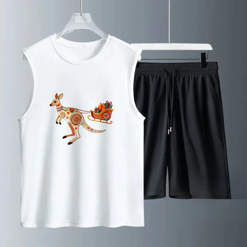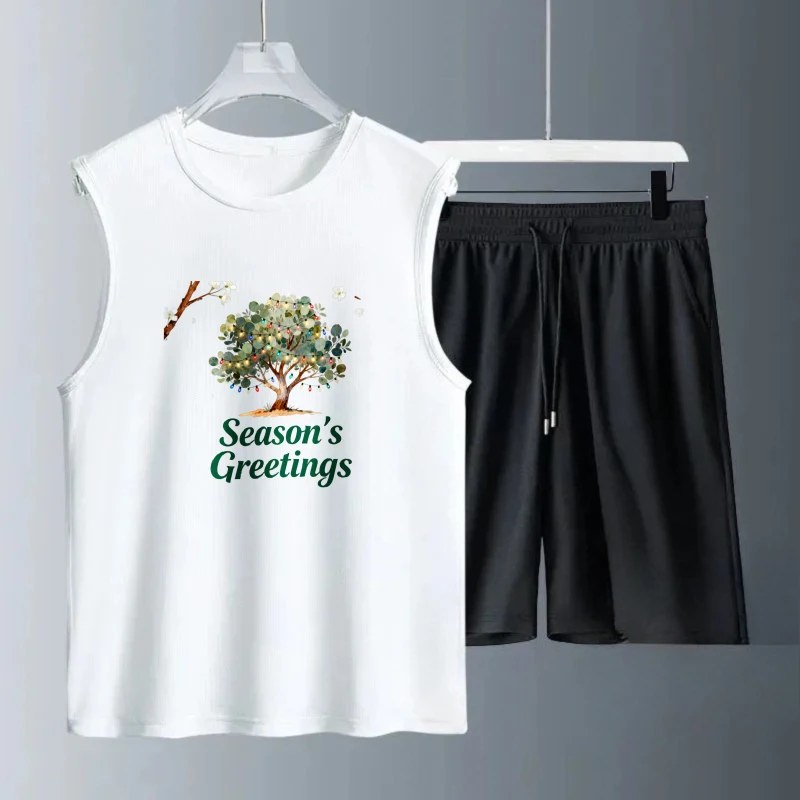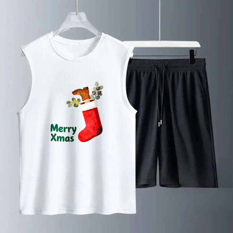 Pánské tílko oblek léto bez rukávů potištěné vánoce dokola ježíš komora topy + šortky pánské sada sportovní dvoudílná rychlý schnoucí