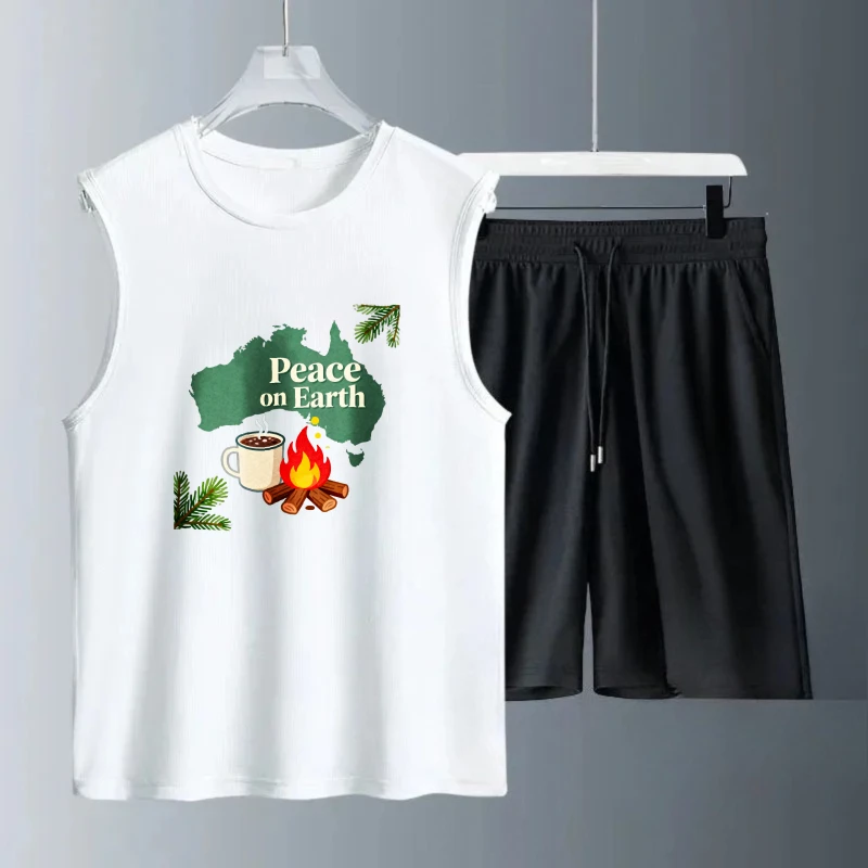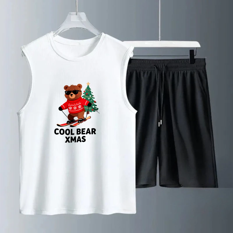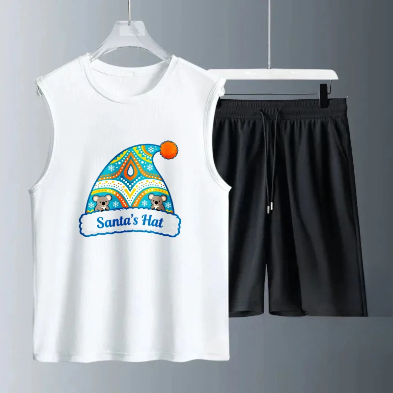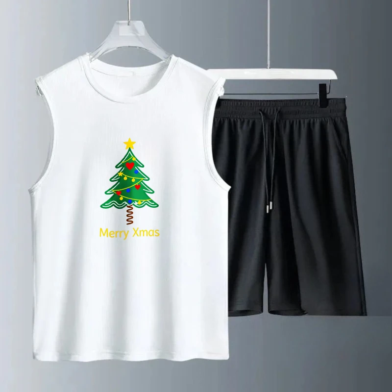 Pánské tílko oblek léto bez rukávů potištěné veselé vánoce komora topy + šortky móda obleků pánské sportovní oblečení rychlý schnoucí 2se