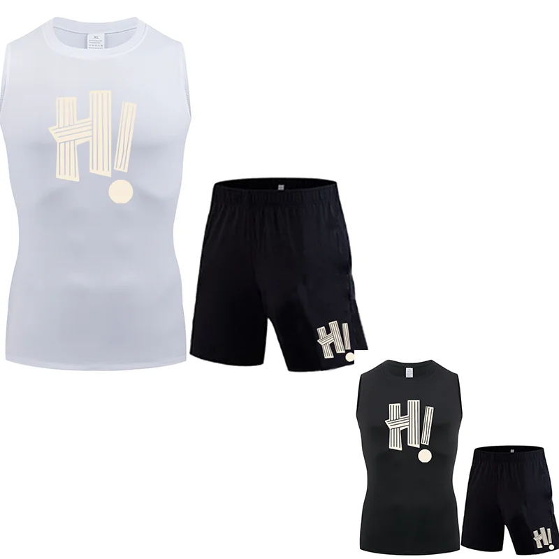 2026 moderní pánské střih bez rukávů striktní šroubení sportovní oblek, rychlý schnoucí elastická tílko, fitka běžecký tílko sada, potištěné nejvyšší