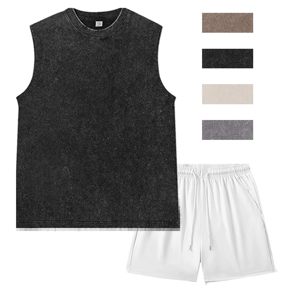 Unisex léto vintage celistvý sepraná tílko a šortky oblek ležérní pouliční oblečení černá bez rukávů nejvyšší a fitka jogging šortky oblečení