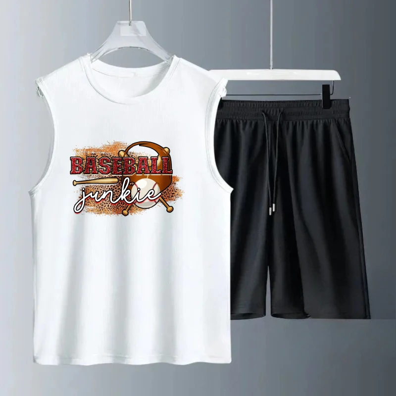 Pánské tílko oblek léto bez rukávů potištěné baseballová feťák komora topy + šortky teplákové soupravy oblečení sada tepláky sada rychlý schnoucí