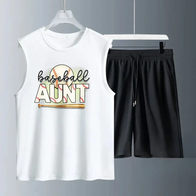 Muži tílko oblek léto bez rukávů potištěné baseballová teta komora topy + šortky oblečení sada sportovní obleků rychlý schnoucí y2k tepláky