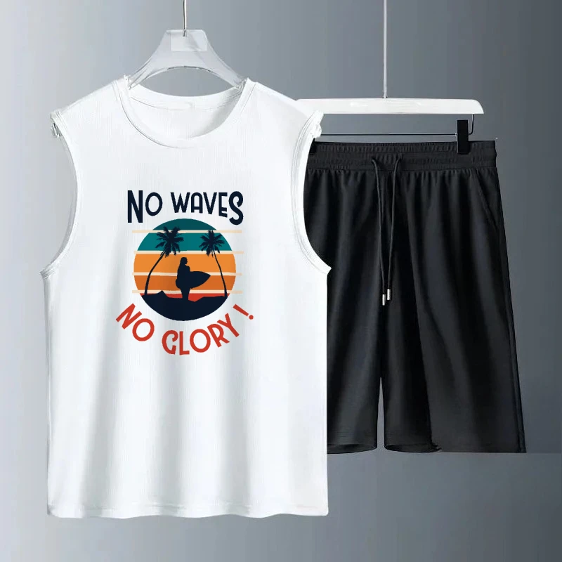 Pánské léto ležérní sety bez rukávů denně nést osamělý pláž tisk oblek pohodlné moderní sportovní t-shirts+shorts obleček sada