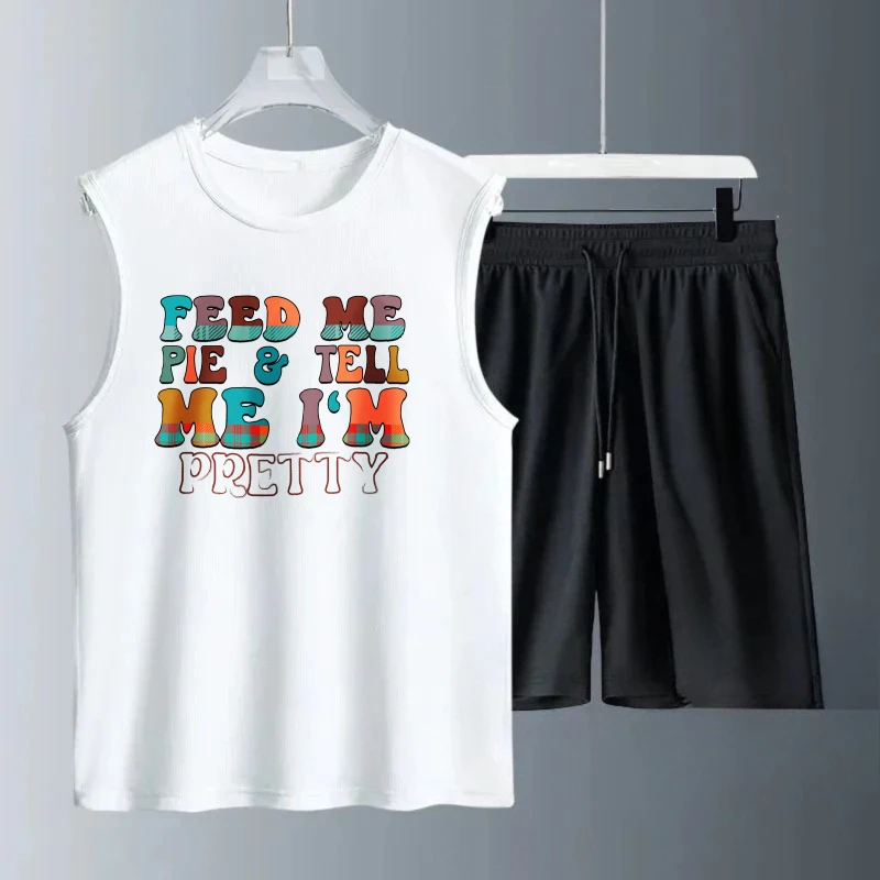 Pánské tílko oblek léto bez rukávů potištěné krmit mi podotknout mi i'm pěkný komora topy + šortky teplákové soupravy obleček rychlý schnoucí muži