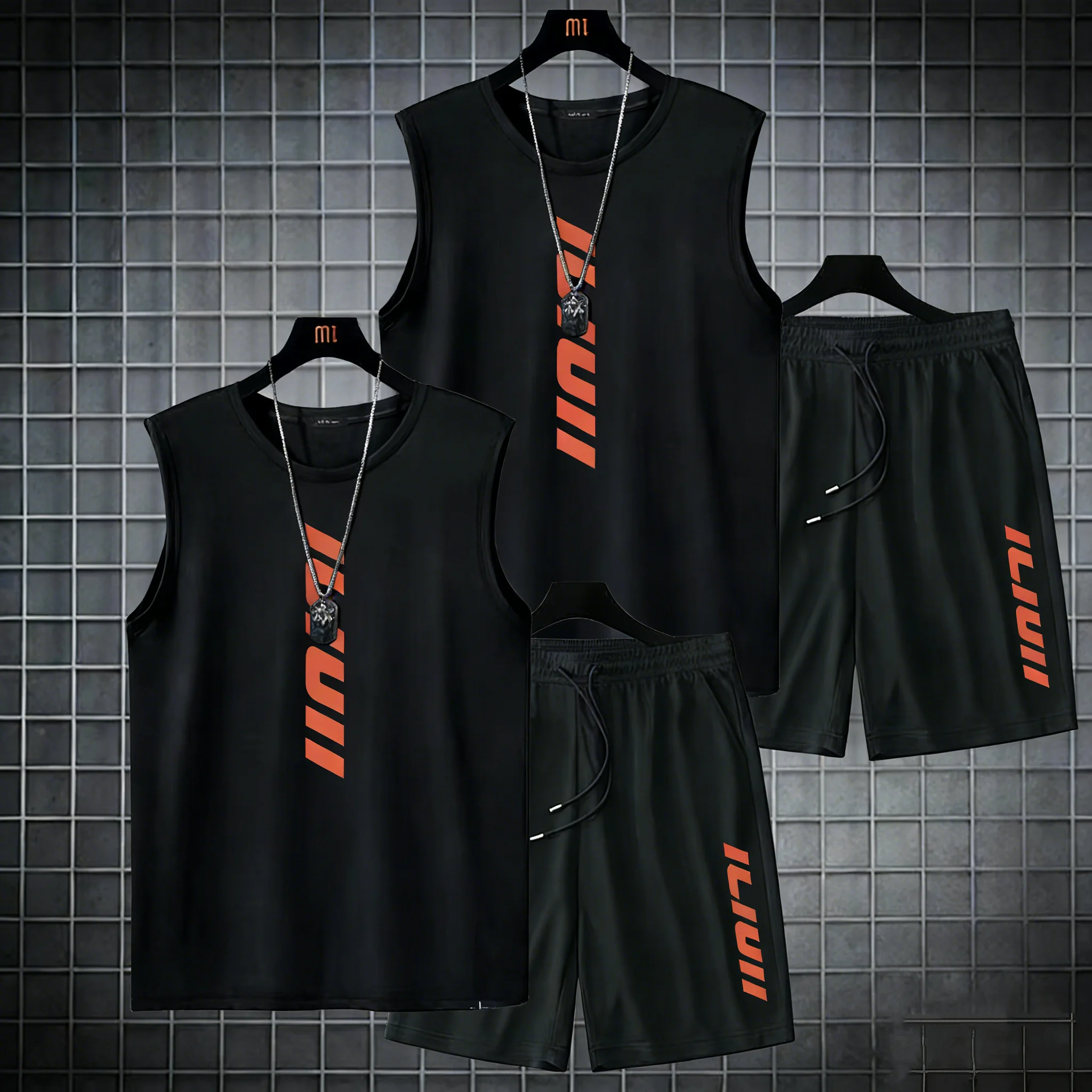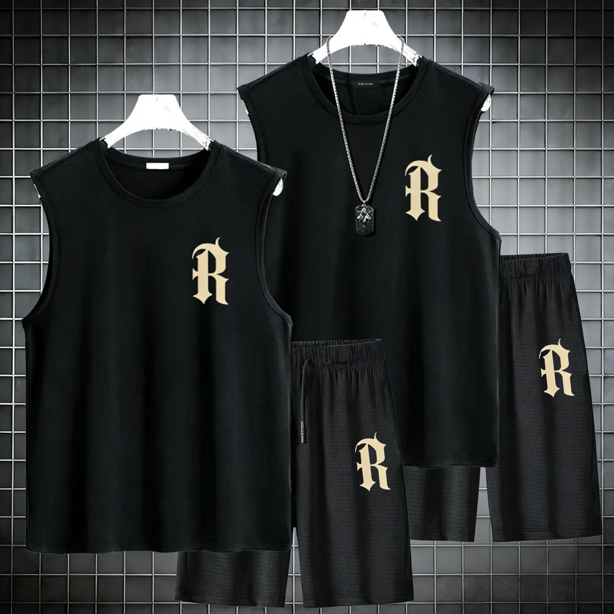 2ks 2026 léto móda ležérní basketbal oblek ulice sportwear 2se kusu prodyšné krátký rukáv t-shirt+jogging šortky sada