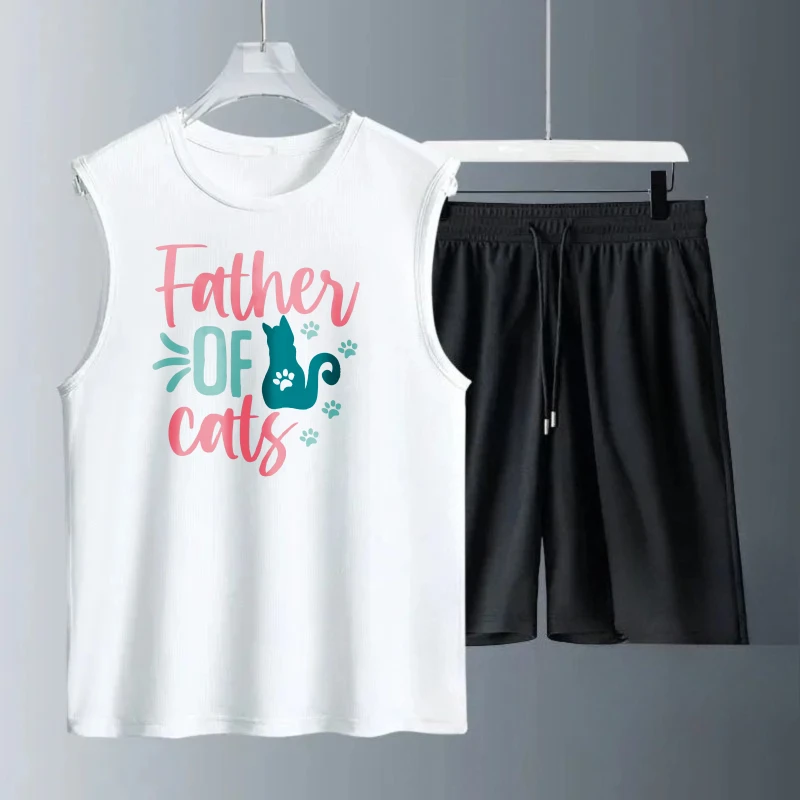 Pánské tílko oblek léto bez rukávů potištěné otec z kočky komora topy + šortky man's sportovní oblek suit tracksuit muži rychlý schnoucí