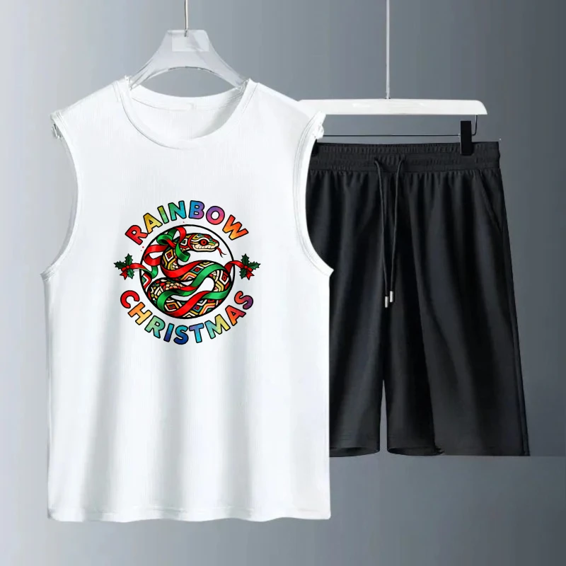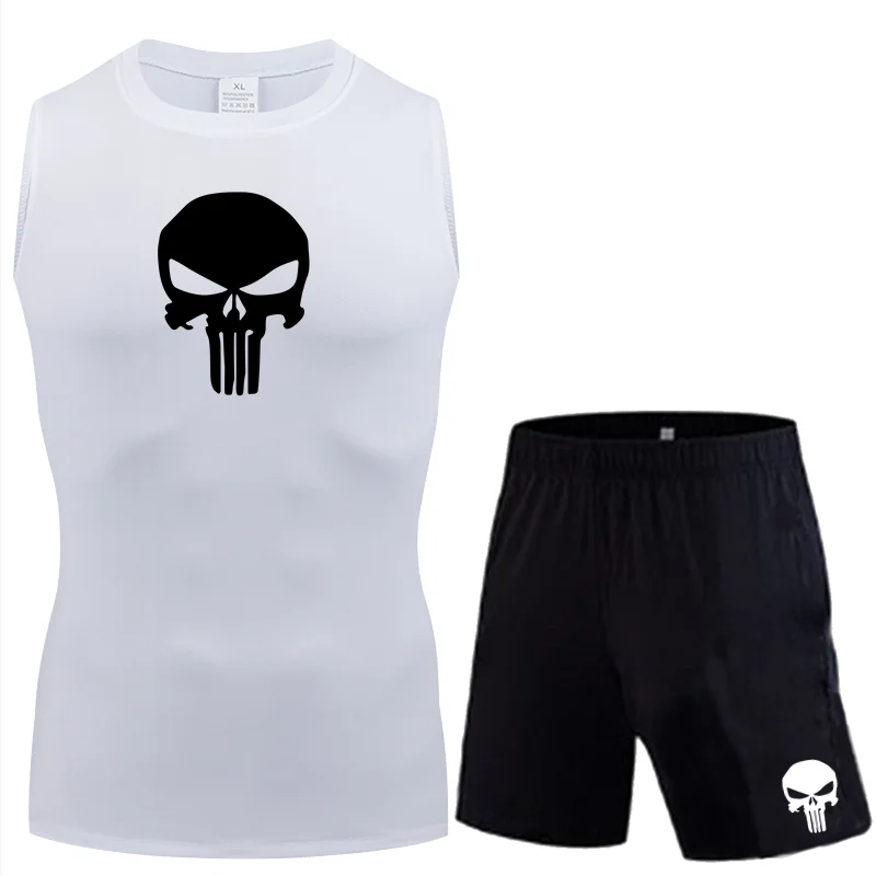 2026 horké prodejní módní lebka tisk rychleschnoucí ,vest šortky dvoudílná sada pánské hubený breathable, komprese sportovní oblek S-3XL