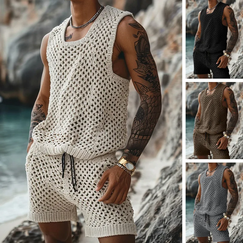 Tílko šortky sada pánské ležérní bez rukávů úplet nejvyšší stahovací šortky sada pro denně nést elastická pás široký noha šortky pro pánské