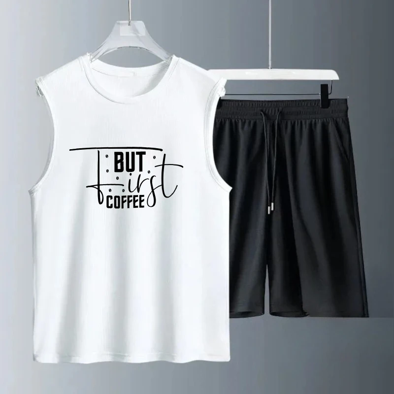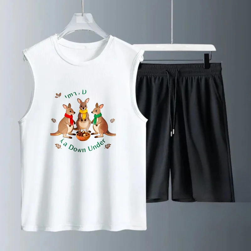 Pánské tílko oblek léto bez rukávů potištěné ale první komora topy + šortky sportovní obleků pánské sportovní oblek rychlý schnoucí sportovní oblek