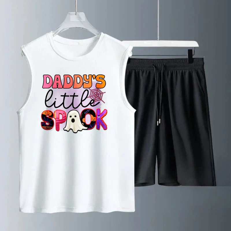 Pánské tílko oblek léto bez rukávů potištěné daddy's málo spock komora topy + šortky kapací oblečení 2se kusu sada rychlý schnoucí sport