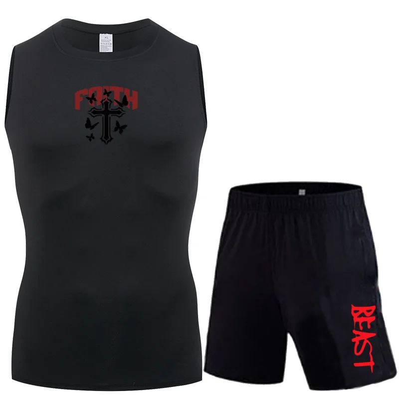 Fitka jiu-jitsu box tvoření rychleschnoucí bez rukávů tílko hubený šortky dvoudílná sada pánské léto nejprodávanější sportovní oblek S-3XL