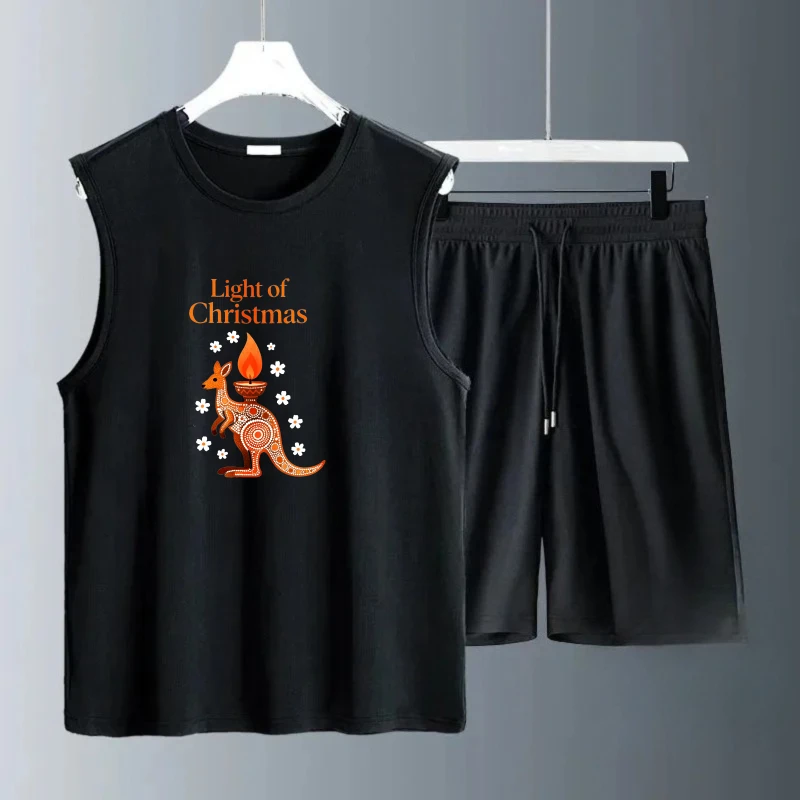 Pánské tílko oblek léto bez rukávů potištěné vánoce asi ježíš komora topy + šortky pánské sada sportovní dvoudílná rychlý schnoucí