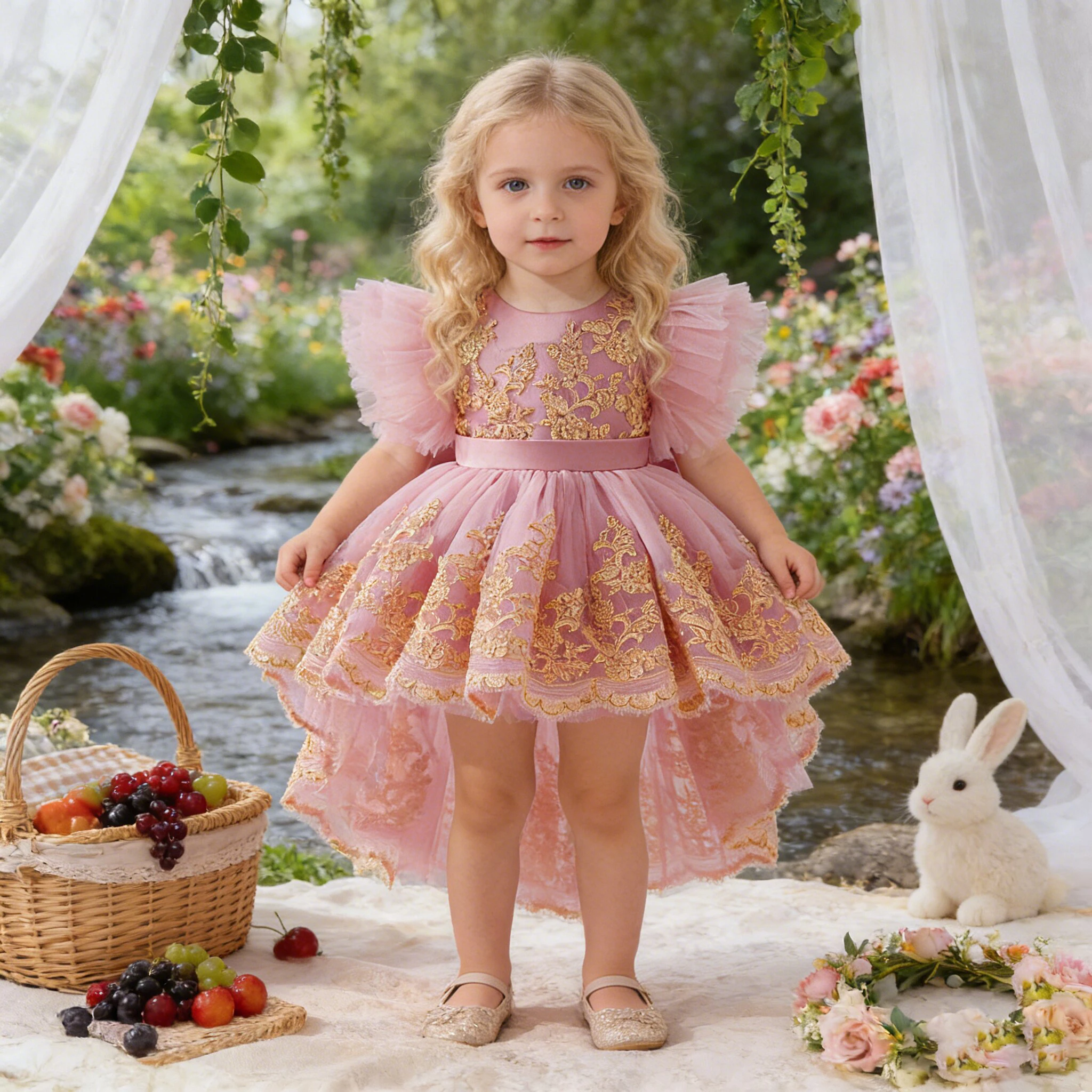 2ks batole kvést večírek děťátko dívčí šaty elegantní růžová svatební kněžna ples talár děťátko družičky 1 yrs narozeniny tutu šaty