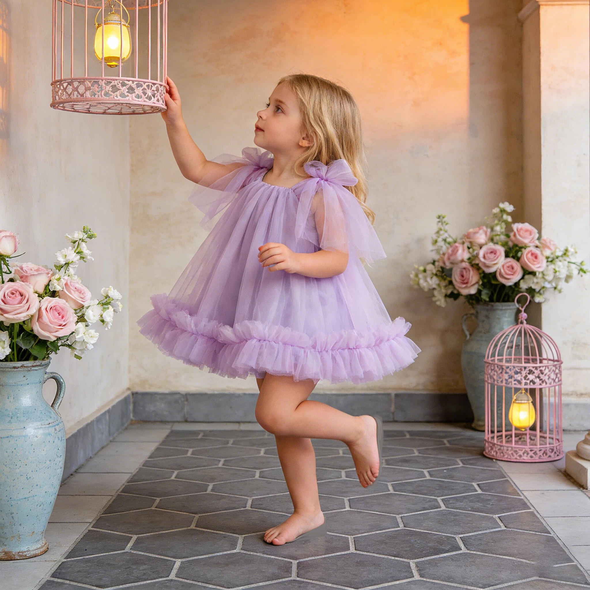 Elegantní tyl svatební večírek děťátko děvče šaty batole luk první narozeniny křest kněžna šaty dívčí družičky soumrak kostýmy