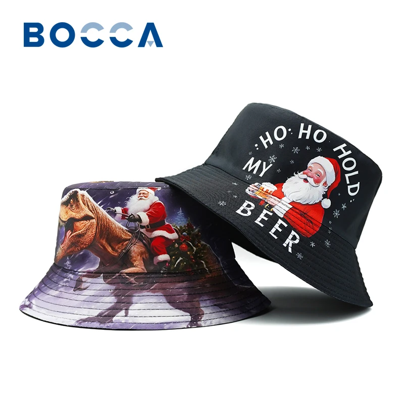 Bocca veselé vánoce střih kbelík čepice legrační santa claus tisk rybář klobouky dvojitý strany panama čepice dospělý slavnost večírek
