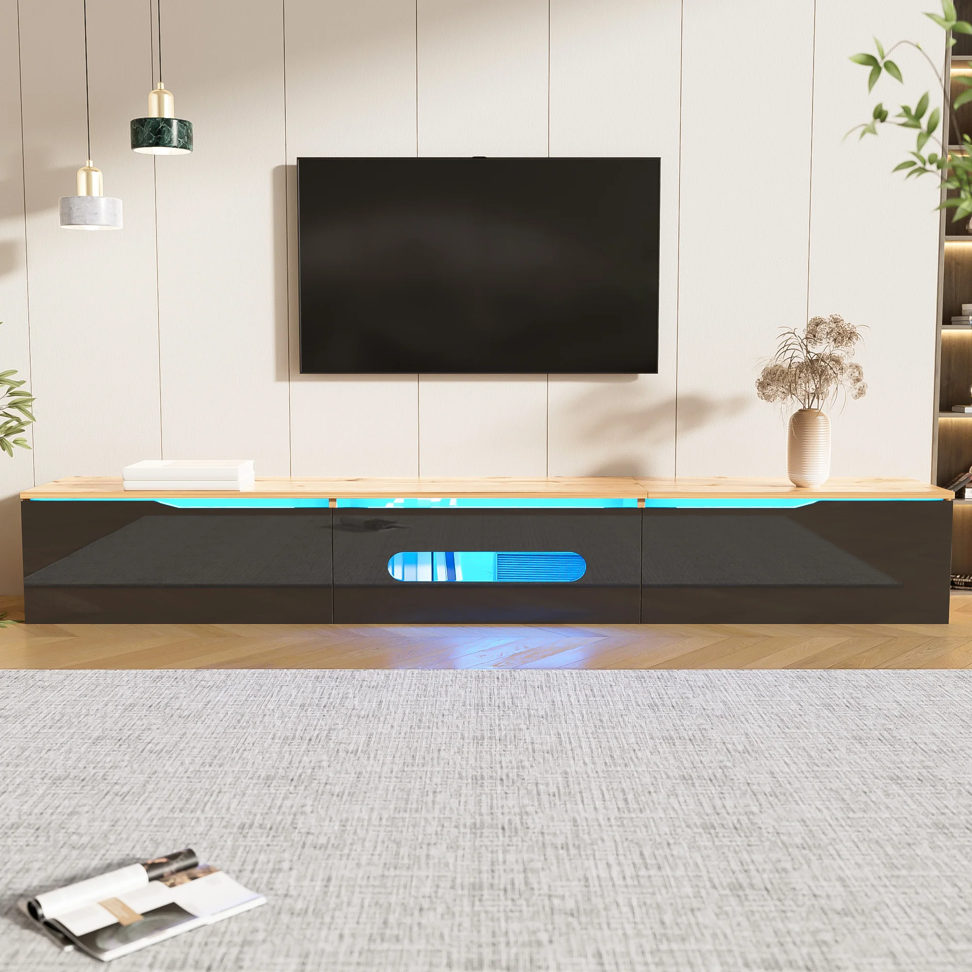 LED vysoký lesklý TV stánek, být schopen držet TV nahoře na 70" s 2se zásuvek, konzole stůl pro žití pokoj a ložnice, černá