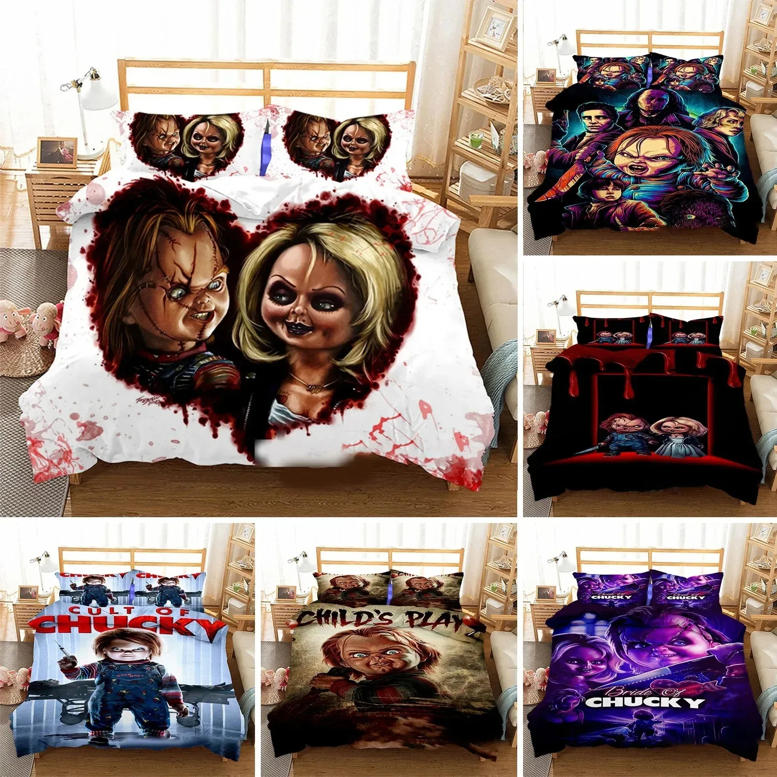 3D potištěné hrůza film chucky ložní prádlo sada povlak na polštář prošívaná deka zakrýt dvojitý zdvojený plný královna král dospělý děti ložní prádlo dusit se zakrýt