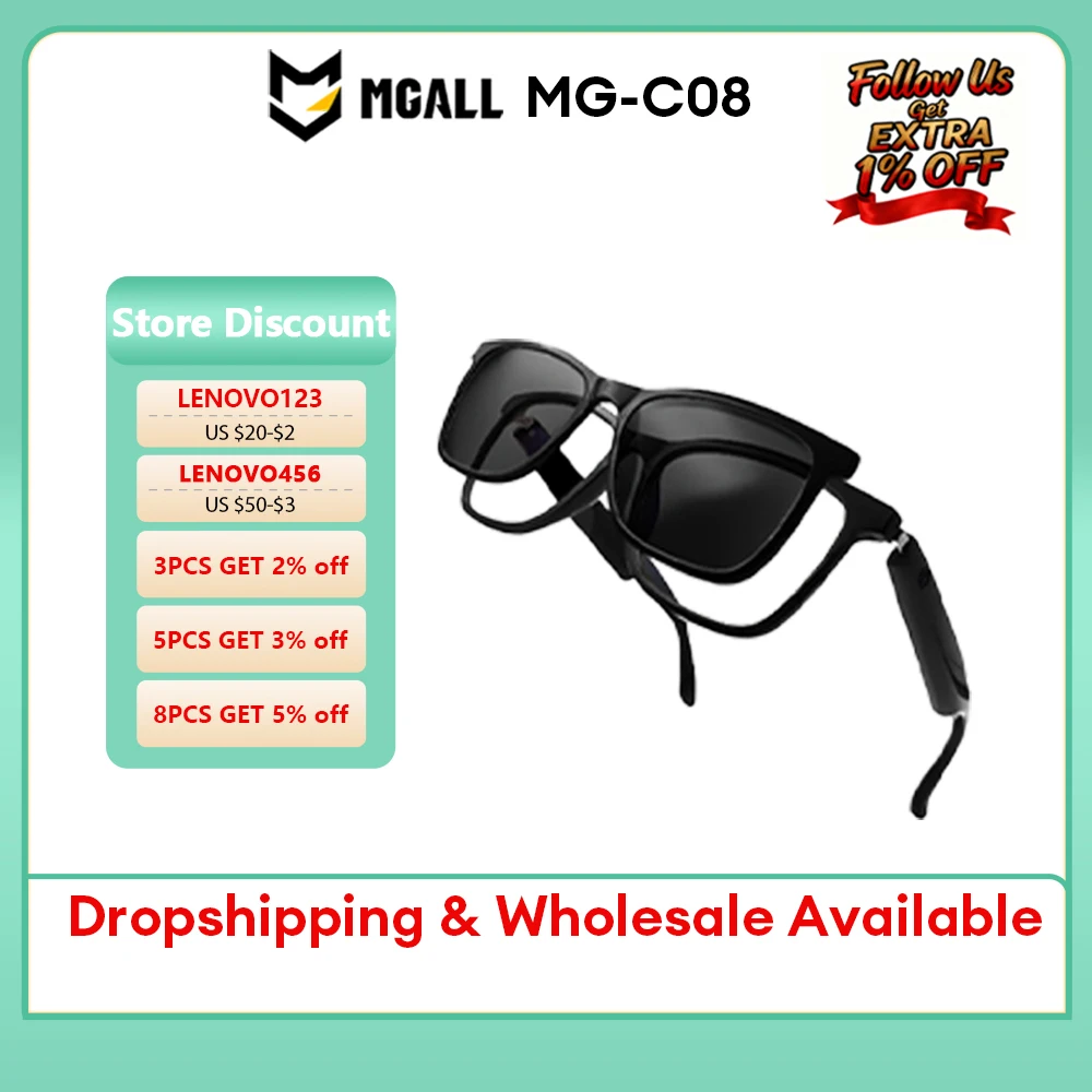 MGALL MG-C08 Bluetooth chytrý brýle AI hlas asistent volat hudba sluchátka sport sluchátka brýle proti slunci konferenční zaznamenat dar