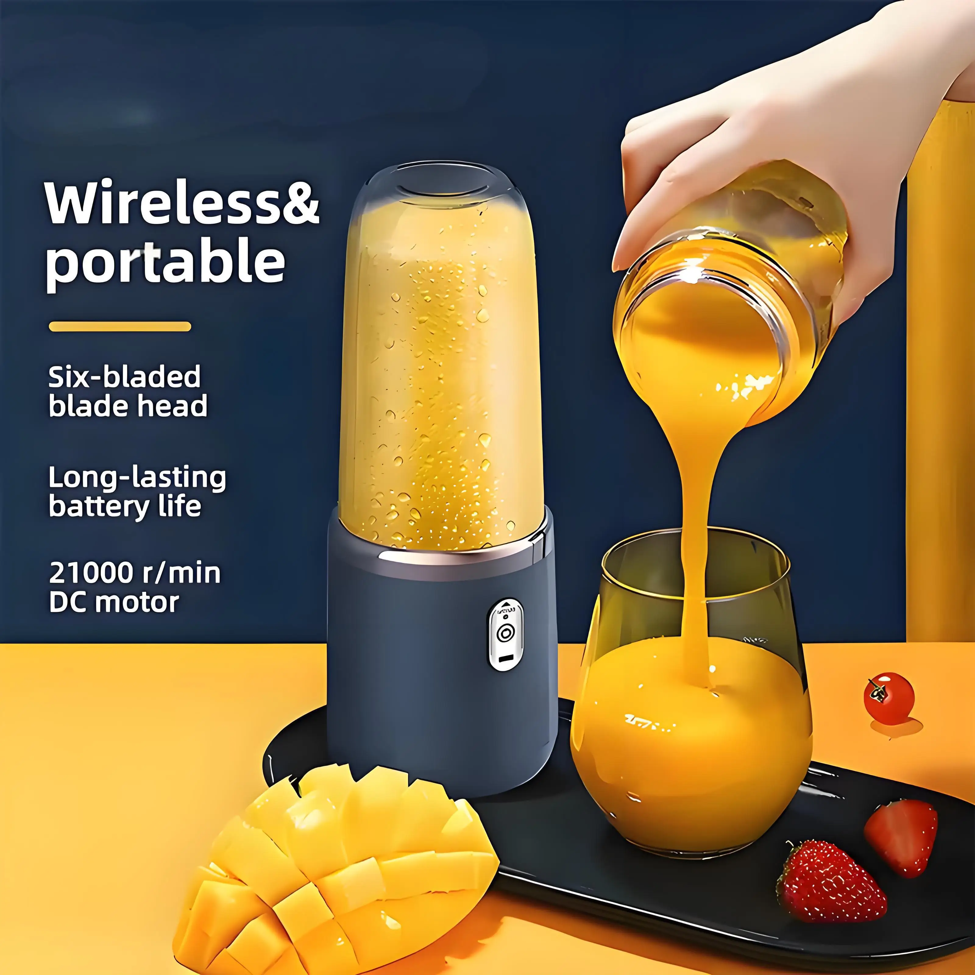 Přenosné blenders 6blade ovoce odšťavňovač stroj multifunkce dvojí pohár odšťavňovač USB nabíjení domácnost oranžová odšťavňovač milkshake směšovače