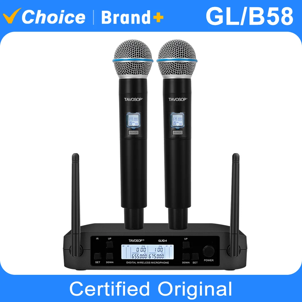 TAVOSOP GLXD4 bezdrátový mikrofon kapesní dvojí kanál UHF rozhodný frekvence dynamické pro karaoke svatební večírek pás církev ukázat