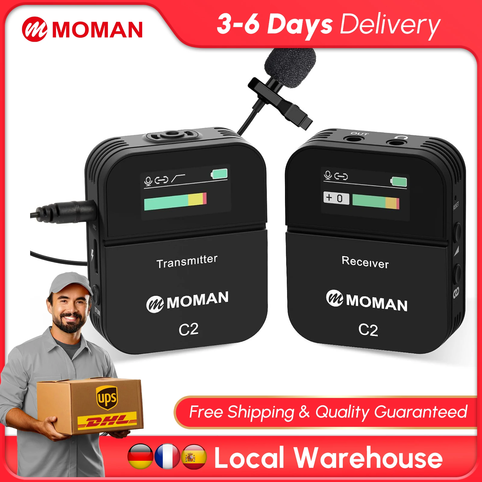 【EU stock】moman C2 2.4G bezdrátový lavalier připínací mikrofon 70m dosah 8H baterie pro inline výuka bydlet nahrávka