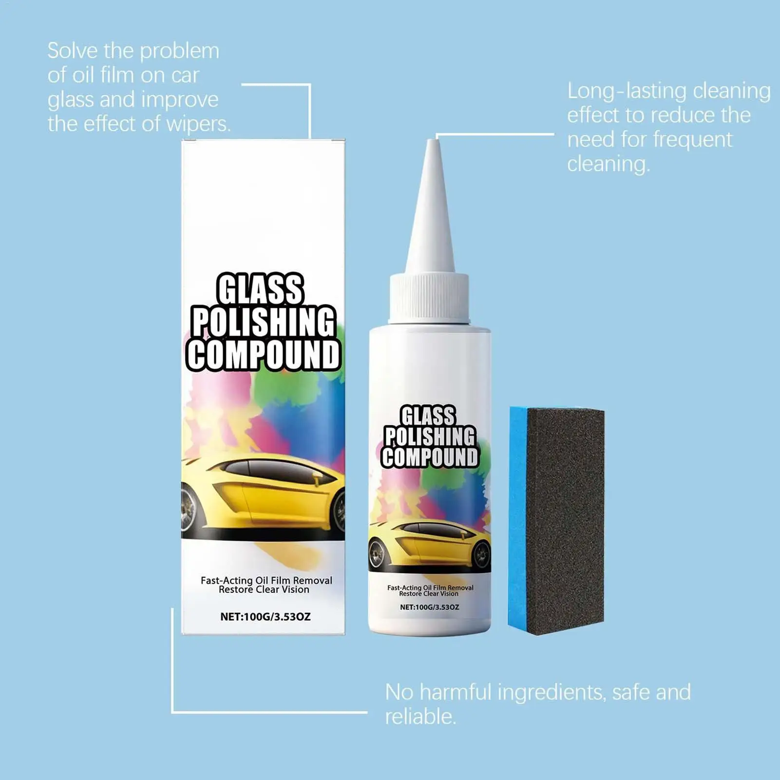 Okno polský 100g scratch-repair anti-rain čistič s houba windshield leštění souprava pro úklid vnitřní exteriér zrcadlo