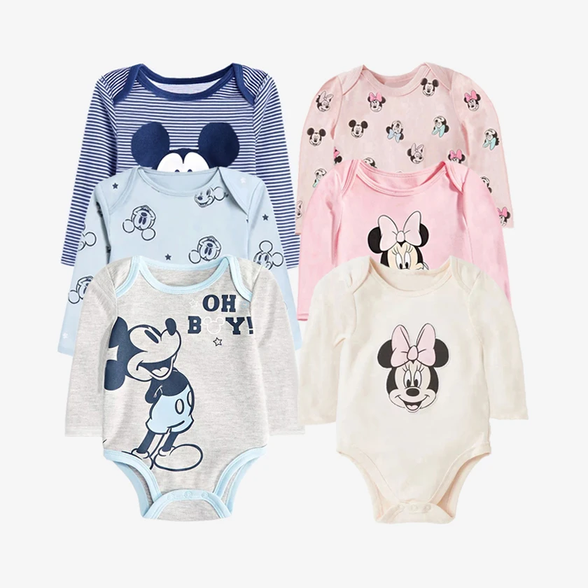 Kojenec hoch děvče šmajchl jaro mickey myš minnie myš potištěné dlouhé rukáv bodysuits novorozence bebe kombinéza
