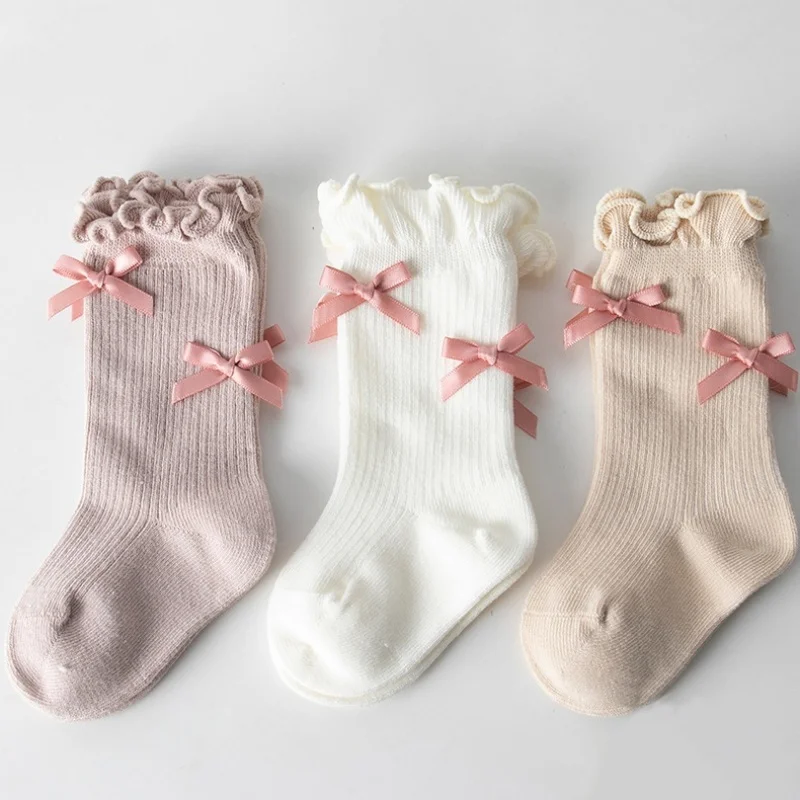 Bavlna novorozence děťátko ponožky jaro podzim vysoký kvalita kojenec batole mid-calf ponožka móda sladké mašle kněžna ponožky pro dívčí