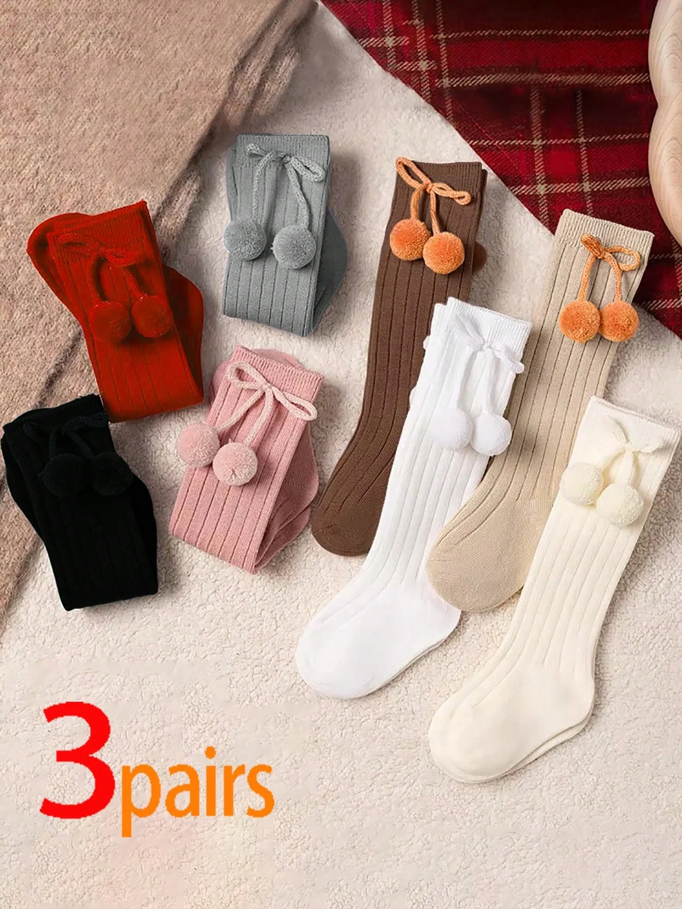 3čepel páry z děťátko roztomilá ankle-high ponožky zdobené s dětské bambulí luk kravaty, vhodný pro dívčí stárne 1-6 let starý pro denně nést