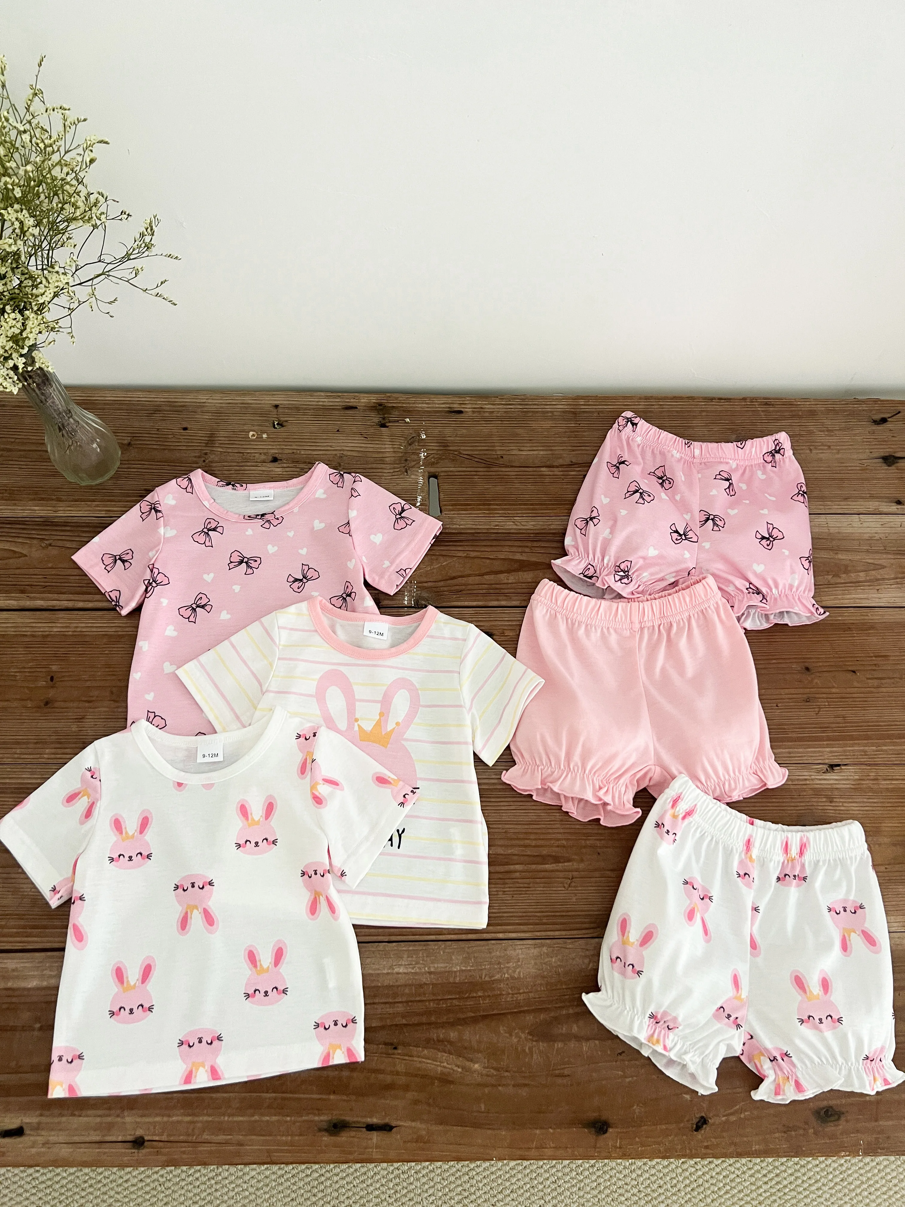 Léto 0-3 let starý kojenec děťátko dívčí krátký rukáv živočich tisk ležérní 2-dílný sada