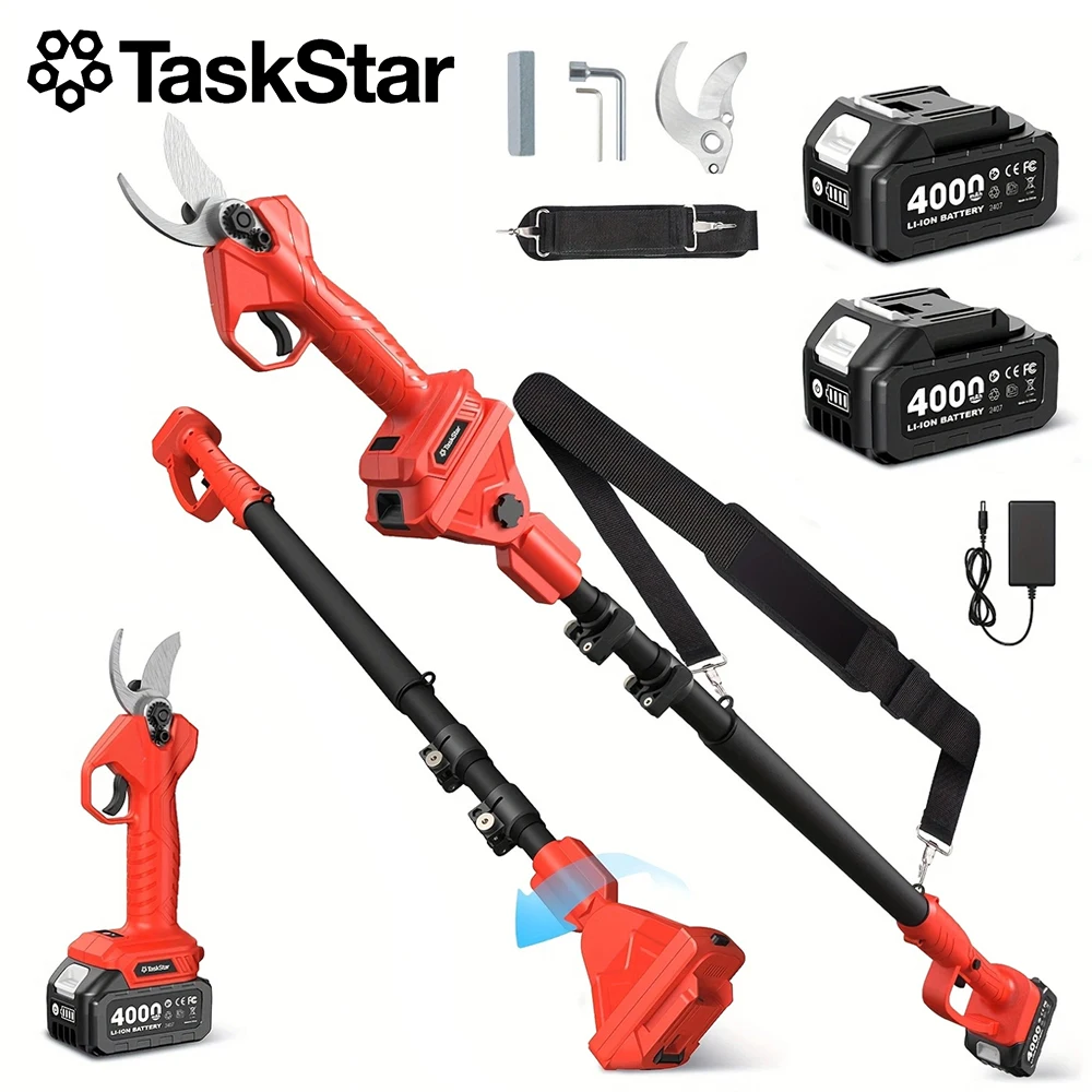 Taskstar elektrický prořezávání shears s teleskopická hýl 15ft maxi dohonit sad nářadí pro strom kapovací prořezávání w/2 4000mah akumulátory