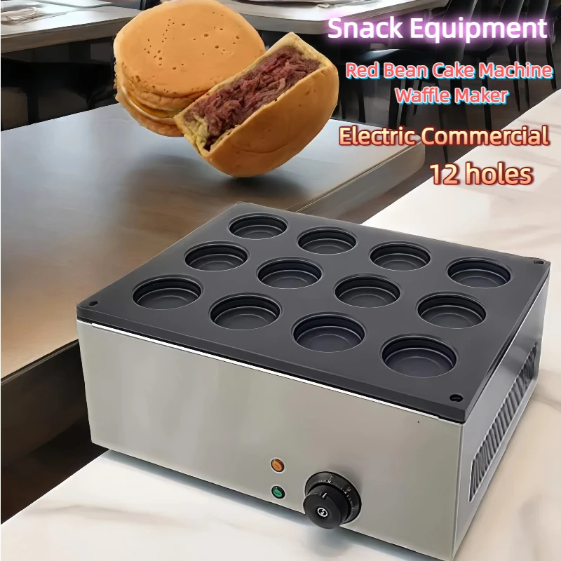 Červená bob dort stroj oplatek tvůrce komerční nepřilnavý povlak palačinka automaty svačina aparatura cukrárna spalování 2800W 12 děr