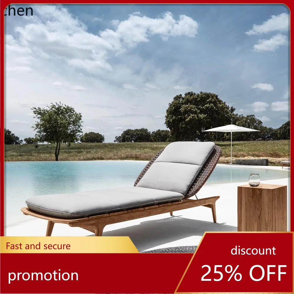Teak outdoorové lehátko patio sad nábytek luxusní celistvý dřevo outdoorové vila plavání kaluž slunce lehátko s polštářek