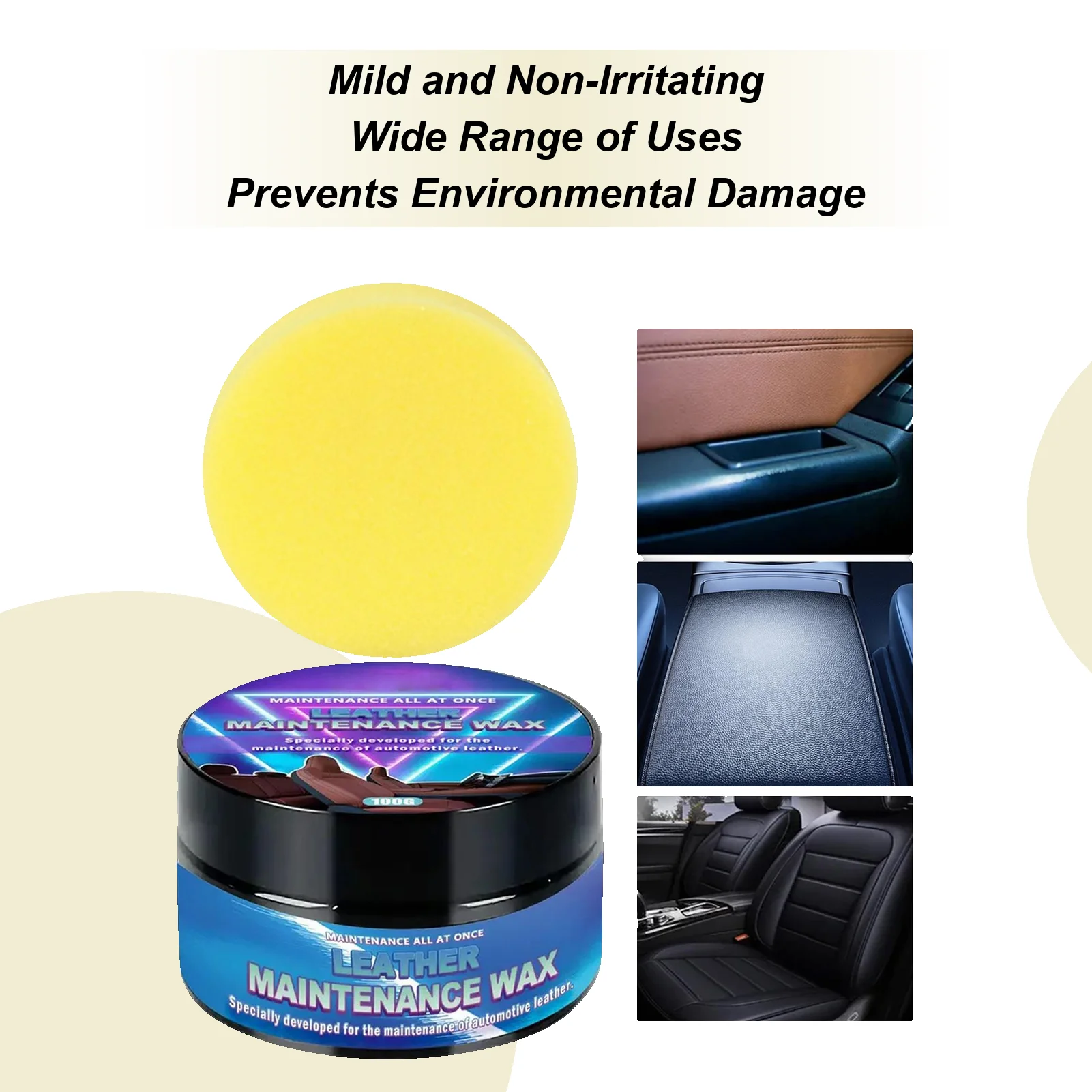 100g kůže kondicionér & restaurátor nourishes oprava poškrábáním & chrání s houba pro auto interiéry sedačky, vyhřívání kolo