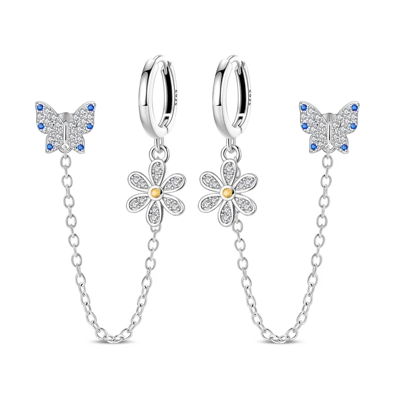 Nový 925 mincovní stříbro kapat náušnice ženy motýl láska kvést střapcem náušnice pro výročí svatební šperků dárky
